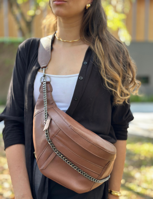 Pochete de Couro Alice Marrom